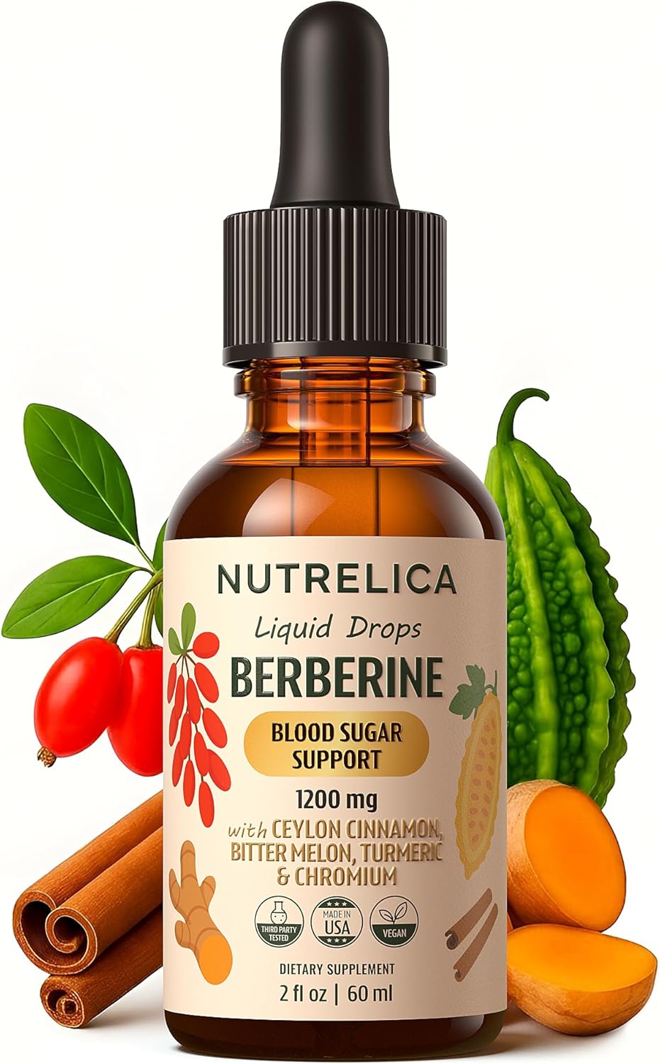 Berberine with Ceylon Cinnamon, Bitter Melon, Turmeric & Chromium – Blood Sugar Balance & Glucose Metabolism – 1200mg, Vegan, No Sugar, Non-GMO