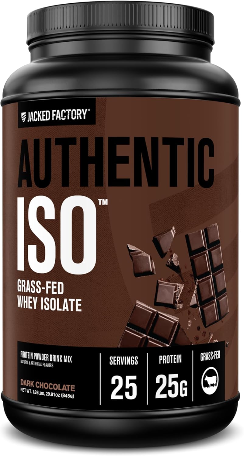 Jacked Factory Authentic ISO Whey Protein Isolate Powder - Low Carb, Non-GMO Muscle Building Protein w/No Fillers, Post Workout Recovery, Dark Chocolate - 25 Servings