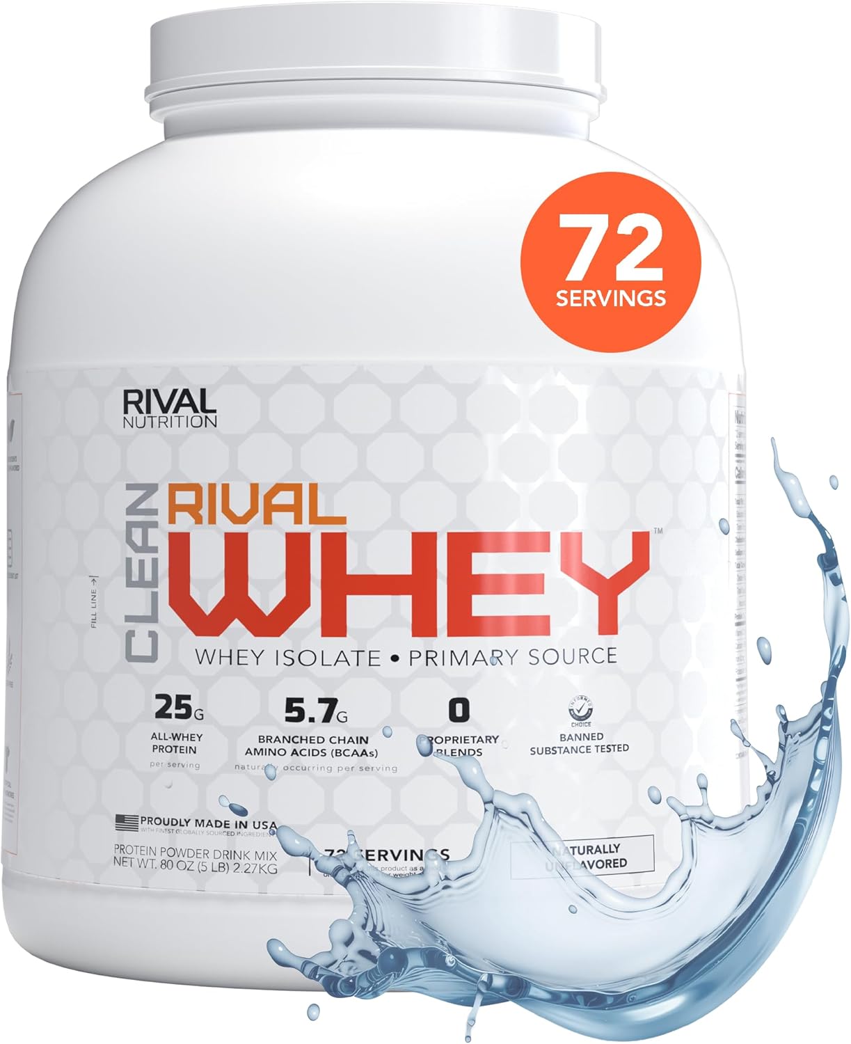 RIVAL NUTRITION Clean Rival Whey Unflavored Protein Powder I 5 Lb, 72 Servings I All Natural, No Artificial Ingredients I 25g Protein, 5.7g BCAAs Per Scoop I Muscle Recovery, Active Lifestyles