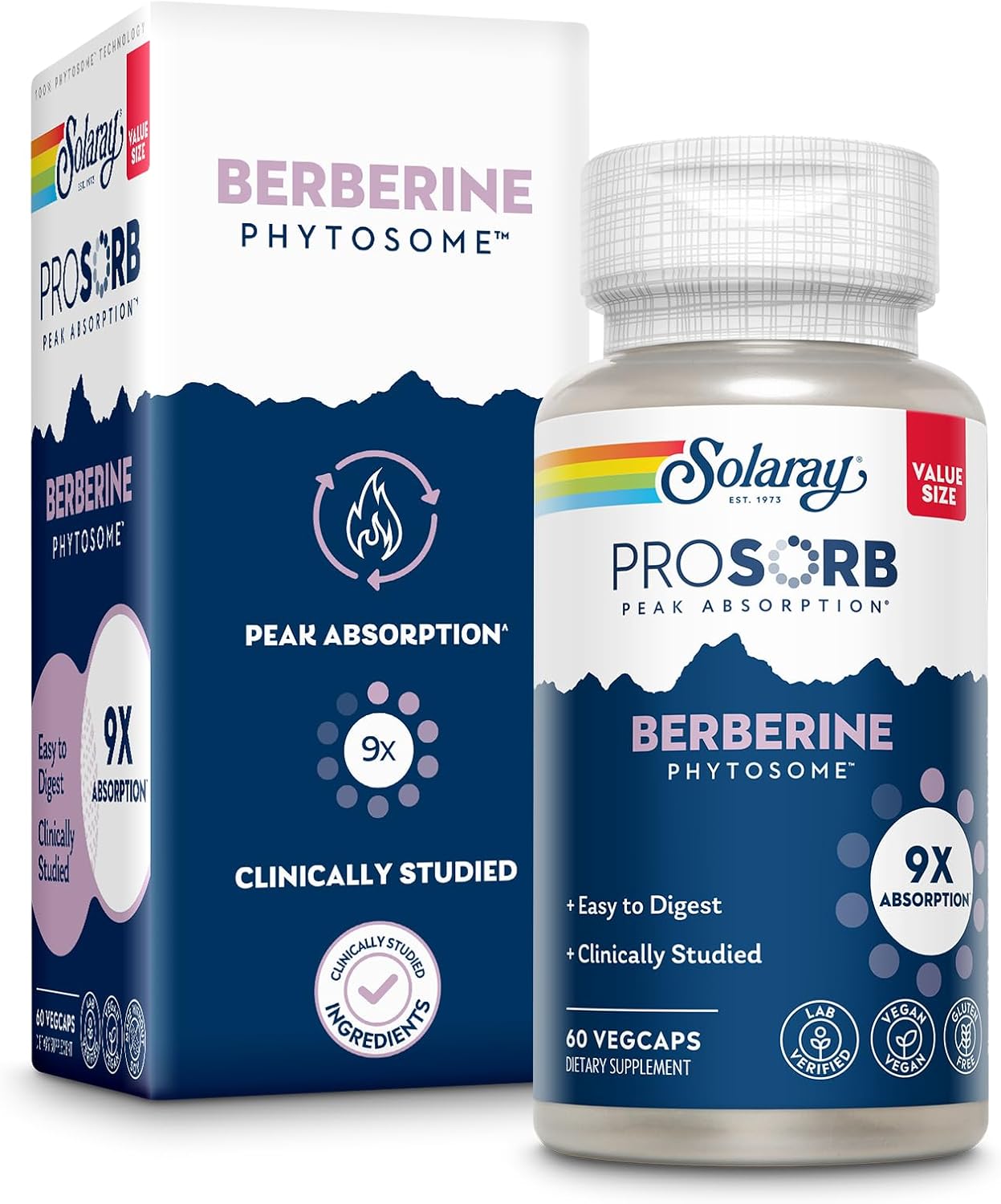 SOLARAY Berberine Phytosome - 9X Absorption and Easy-to-Digest - Standardized to 30% Berberine HCl - Vegan, Made Without Soy - 60-Day Guarantee - 60 Servings, 60 VegCaps